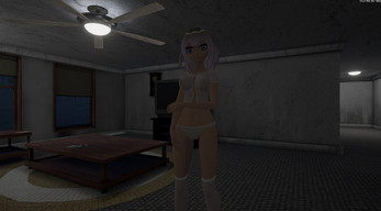 a room of a bunch of girls just panting filled with seed from her ravanging them when she sees the mc she stands up and teases the mc with her cock and then flicks it as she walks towards a door which leads to the arena where she will walk around in any time you see her you have around 10-15 secs to match the light {balancing required}